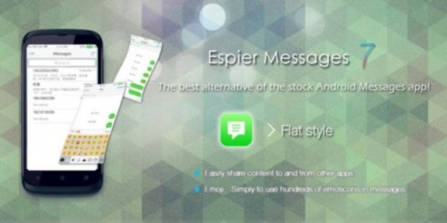 Espier Messages7  SMS,MMS ve eMessage (Apple'ın iMessage gibi) için stok Android Mesajlar uygulamasına en iyi alternatif sağlayan modern bir birleşik iletişim aracıdır.Ayrıca, bu uygulama size popüler düz stilde UI'larda sunar,düz bir tarzda tam UI ve UE'leri almak için Espier Dialer 7 uygulamasını yüklemeniz gerektiğini unutmayın.