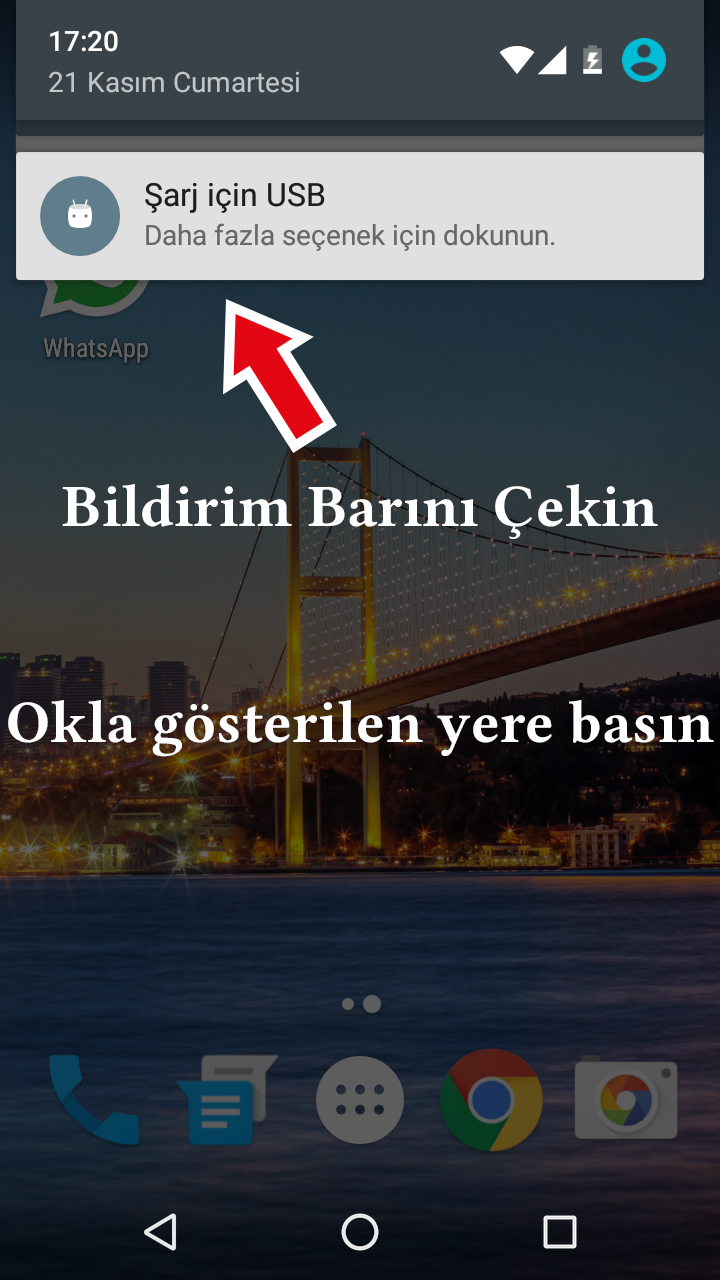 Çözümü: Bildirim barını çekin ve şarj için usb'yi depolama için usb yapın.