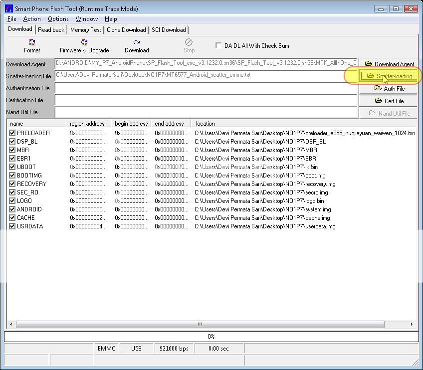 Sp Flash Toolu açın scatter dosyasını seçtikten sonra,