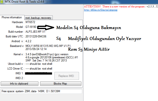 Kurduğum Telefonumun Mtk Droid Tools Bilgileri