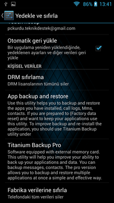 - Titanium Backup PRO sisteme entegre edilmiş (Ayarlar>Yedekleme ve Geri Yükleme)
