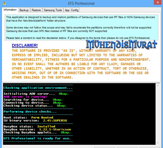 Geliştirici Seçenekleri >> USB Hata Ayıklamayı aktif edin , telefonu bilgisayara bağlayın. (Bu arada EFS PRO açık olsun)