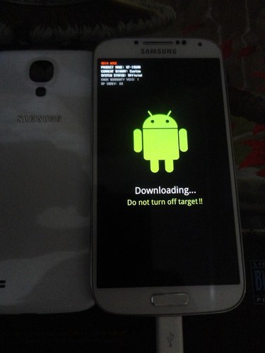 Odin ile elinizdeki Custom CWM'yi yüklerken "Pass" yazar yazmaz bataryayı çıkarıyoruz.