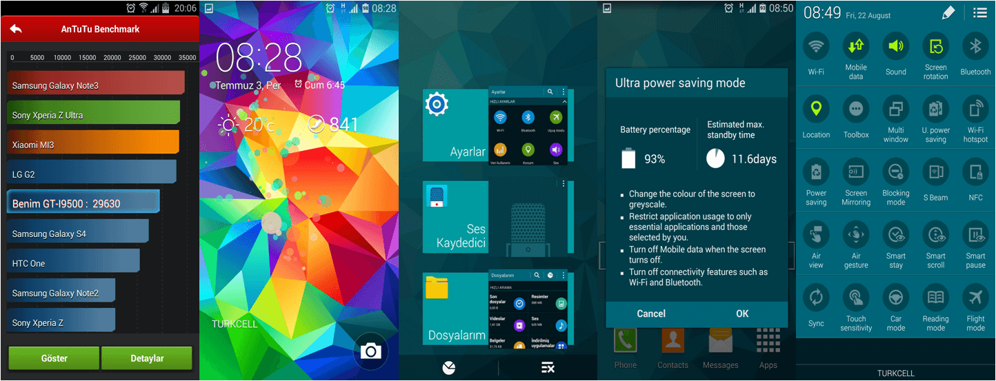 ----- Launcher (S5 veya Stok) (:Kişileri de dahil olmak üzere Launcher,Settings (Tasarruf ve Araç Ultra Güç), Galeri, duvar Kağıdı Uygulamaları ve Video (player) Uygulaması.)