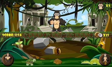 Çeşitli kuşlar, böcekler ve altından geçen hayvanlar üzerinde hindistancevizi atmak için sağ alt simgesine dokunun. Şapırtılı kuşlar ve böcekler tarafından bonus puan alın, ama Turtle hindistancevinizi boşa harcamayın - Bu şekilde puan kaybedersiniz!