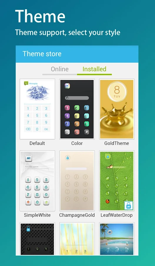 6. Tema desteği: Tema şifre ekranı; iOS 7 teması, iOS 7 altın tema, iPhone 5'ler tema, karanlık bir tema ...