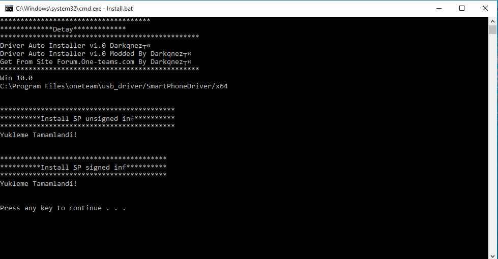 Yazılım yükleme işlemi tamamlanmıştır.