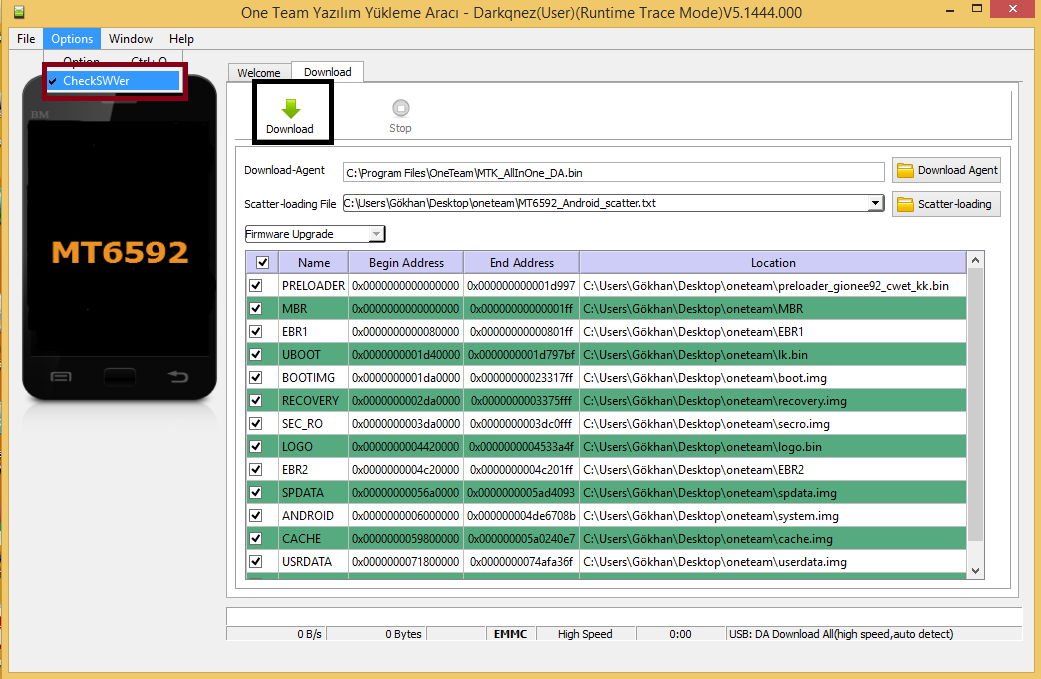 "CheckSWVer" seçeneğinde bulunan tik işaretini kaldırınız.