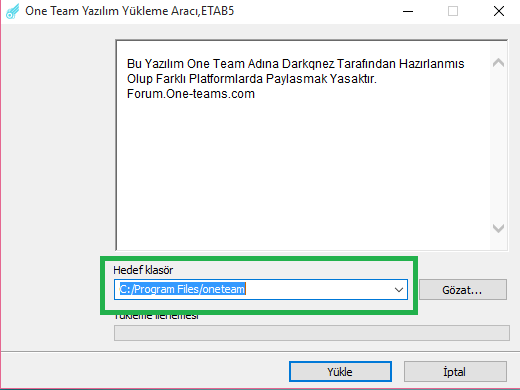 2- Programı Çalıstırdıktan Sonra Kurulum Ekranıyla Karşılacaksınız. Siyah Bölgedeki Kurulum Alanını Değiştirmeden Yükle Butonuna Basınız