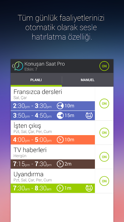 Konuşan Saat kritik olaylarınızı zamanlayarak ve belirli olaylarınızı gerektiğinde size bildirerek zamanınızı yönetmenize yardımcı olur.
