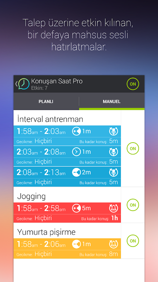 Manuel fonksiyon size zaman periyodlarını isteğe bağlı bir şekilde aktif ve pasif olarak ayarlamanızı sağlar