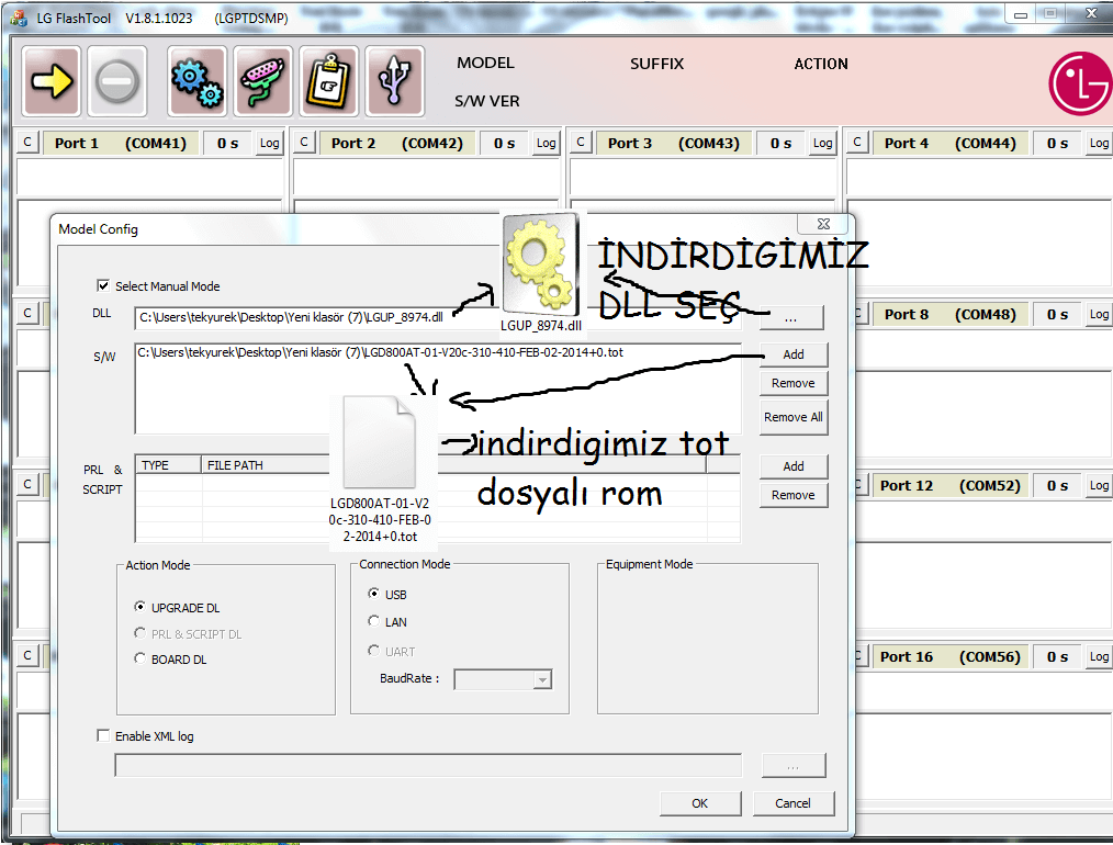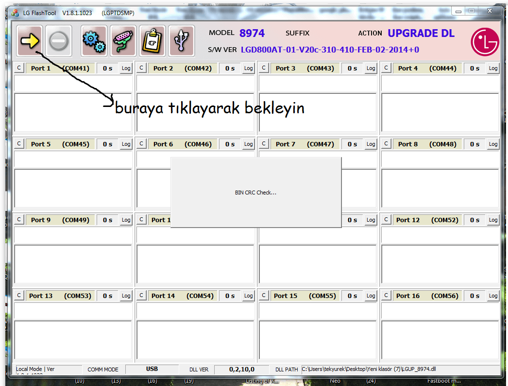 • LGFlashTool_1.8.1.1023  PROGRAMI İLE YÜKLEMEYİ GERÇEKLEŞTİRECEGİZ