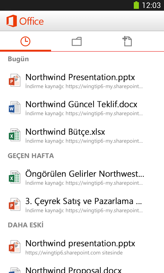 ? Son Kullanılan Belgeler ? Office Mobile buluta bağlıdır. Bilgisayarınızda en son görüntülediğiniz belgelere telefonunuzda son kullanılan belgeler bölmesinden erişebilirsiniz.