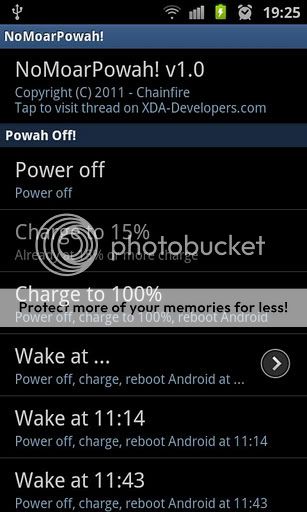 No Moar Powah uygulaması ile telefonunuz kapalı iken şarja taktığınızda karşınıza bir ekran çıkacaktır. Bu ekranda yüzdeli olarak şarj durumunu görebilirsiniz. Pil seviyesi Uygulamanın ayarlarında mevcut olan seviyeye geldiğinde telefon otomatik olarak yeniden başlayacaktır. Ayrıca Androidli telefonlarda en büyük sıkıntılardan biri olan kapalı iken çalar saatin çalmaması sorunuda çözebiliyorsunuz. Çalar saatinizi normal şekilde kurduktan sonra bu uygulamanın ayarlarına girip ''Wake At'' kısmına çalar saat olarak belirlediğiniz zamandan yalnızca bir kaç dakika önceye kurarsanız bu işlemi de gerçekleştirmiş olursunuz.Uygulamayı kullanabilmeniz için cihazınızın Root edilmiş olması lazım.