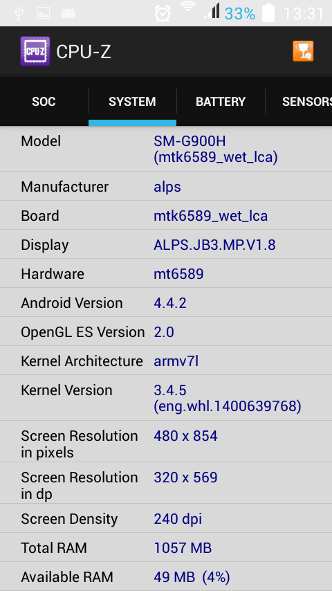 Cihaz 1 Haftalık MTK 6589 işlemcilidir.