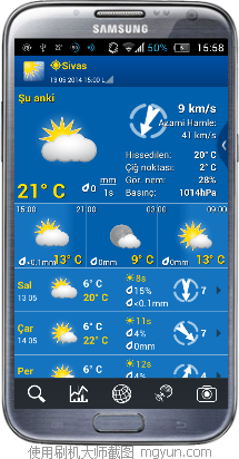 •   Bir sonraki haftaya ilişkin sıcaklık, rüzgar yönü ve hızı, hava basıncı, yağış miktarı ve olasılığı ve bağıl nem bilgilerini içeren 3 saatlik tahminler