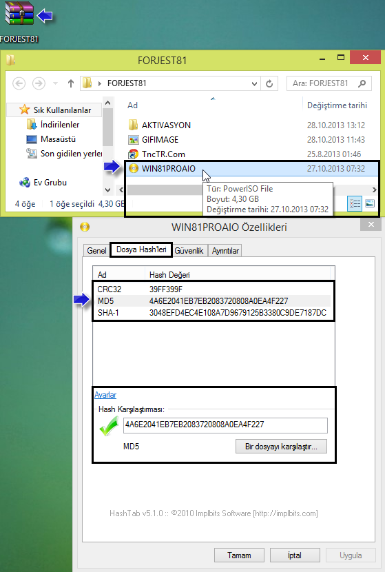 RAR'LI DOSYA İÇERİĞİ + ISO HASH DEĞERLERİ