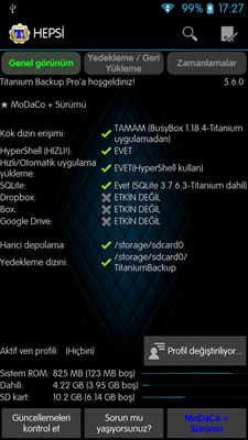 - Titanium Backup PRO sisteme entegre edilmiş (Ayarlar>Yedekleme ve Geri Yükleme)